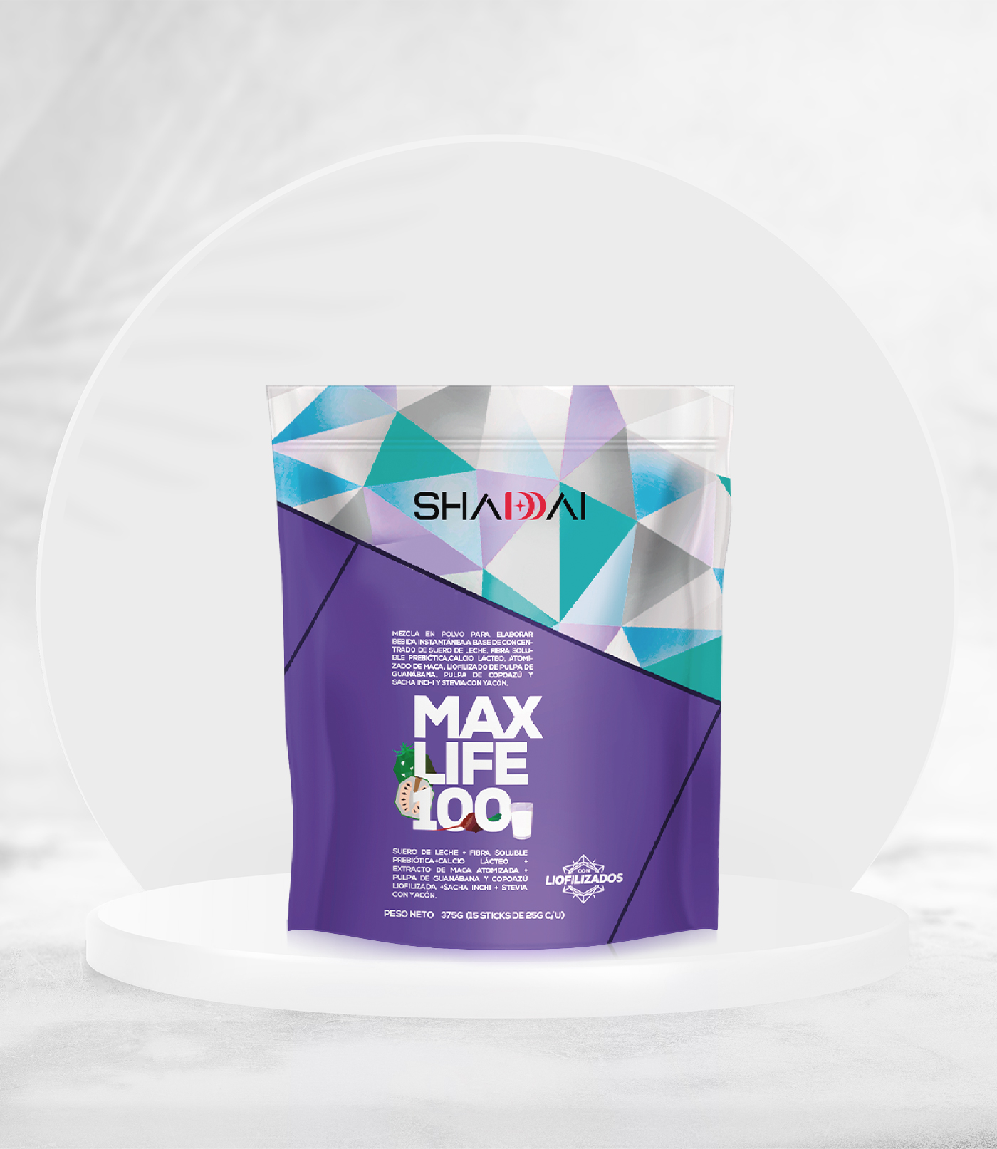 Potencia tu energía con MAX LIFE 100, proteína de suero de leche con maca, sacha inchi y guanábana que regenera músculos, aporta vitaminas y refuerza tu bienestar integral.